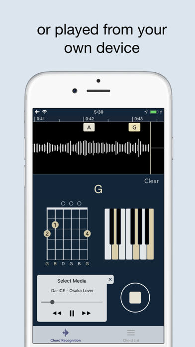 | ● You don need to have an internet connection (unless you want to play a song from YouTube or a streaming service). How does Chord ai work? Chord ai can find the chords of a song in two ways: 1) For audio files that you have on your device or iCloud, YouTube videos, SoundCloud songs, Chord ai will process the song in a few seconds to give you all the chords of the song at once 2) Through your device microphone. |