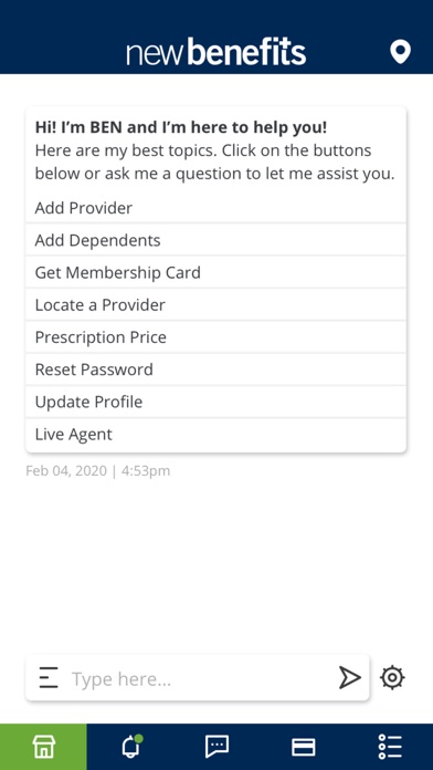 | ● CHAT WITH BEN: Your Benefit Expert Navigator chatbot helps you navigate the app. |