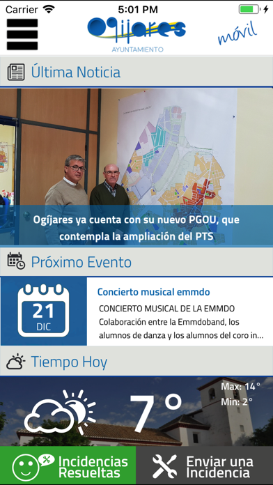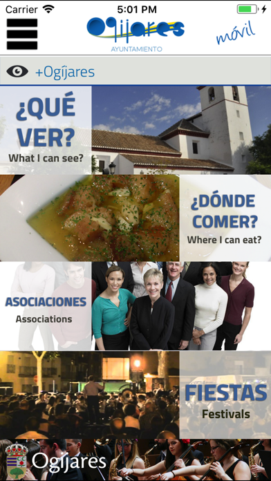 | ● Aparecerá zona y hora tanto de salida como de llegada. CALENDARIO - Infórmate de todos los eventos que tendrán lugar en tu municipio, para que no te lo pierdas!! GALERÍA - Exposición de Fotos y Vídeos de Ogíjares. INFORMACIÓN TURÍSTICA - Pequeña reseña de nuestro pueblo, explicando su historia y monumentos en cuatro idiomas. ALERTAS - (AVISOS Y CALENDARIO) Notificaciones Push de nuestro municipio. |