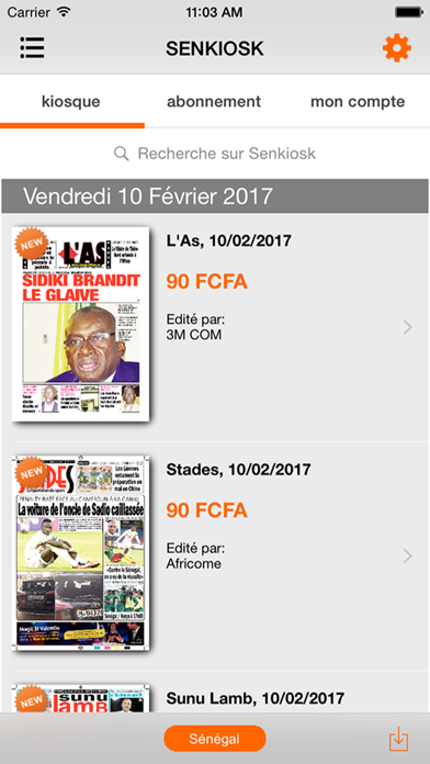 Senkiosk is Free News app, developed by Orange Senegal. Latest version of Senkiosk is 1.0, was released on 2017-02-14 (updated on 2017-02-14). Overall rating of Senkiosk is 0. This app had been rated by 0 users.