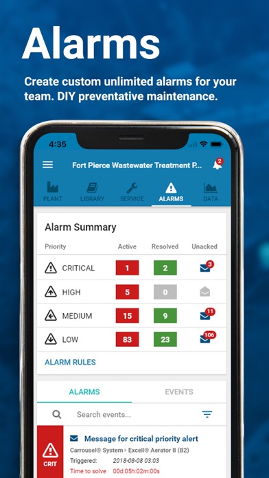 | ● Implement an effective preventive maintenance program to extend the life of your equipment. Alarm Management Get immediate notifications of problems and quickly make informed decisions based on your knowledge library. |