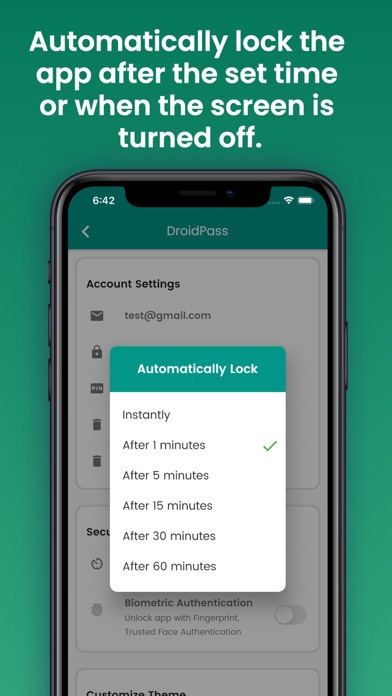 | ● This password app securely stores personal info like your Contacts, Wi-Fi passwords, Secure Notes, or anything else you need to store secure and accessible. Features of DroidPass password manager for iOS: ∙ Simple and easy password app. ∙ Store passwords for all types of websites with strong AES-256 encryption in a password vault. ∙ The advanced encryption standard or AES 256-bit encryption in this password manager saves all your passwords secure. ∙ DroidPass password saver will sync and backup the data across all your devices instantly. ∙ Access via one single master-pin / Fingerprint. |