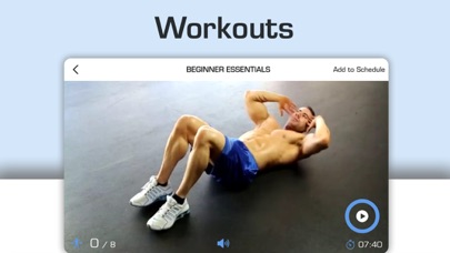 | ● The WORKOUTS page features all different types of ab-related workouts, each carefully researched and constructed to match anyone’s experience or lifestyle. |