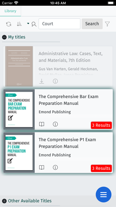 | ● Open a publication with results to see those results directly in the book. • New multitasking engine allows you to download multiple publications at once. • Clear, common-sense navigation for instant access to the information you need • Push updates ensure you always have the most up-to-date materials • Full-text boolean searching that provides immediate results • Create and organize personal bookmarks, highlights, and notes easily • Annotations and actions history are synchronized across all of your digital devices • Quickly copy and paste into other documents, complete with references and links • Share links with other Emond Reader users that automatically open the app and take them directly to the referenced location Emond Publishing is widely regarded as Canada’s leading independent legal and educational publisher. |