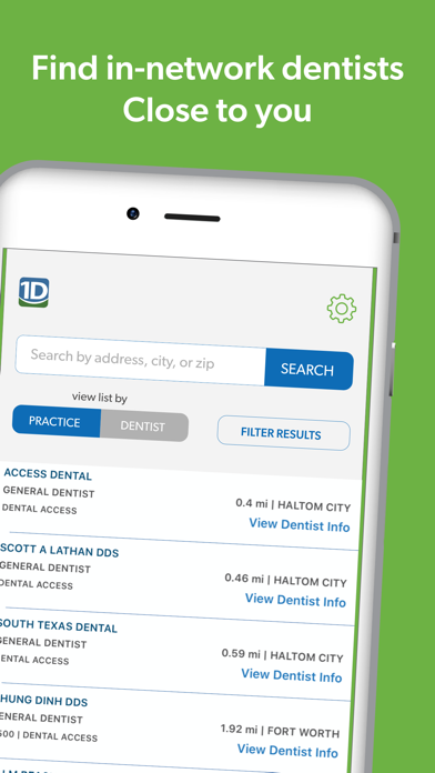| ● Key Features: - Digital membership card in your pocket - List of dental discounts by plan available at every dental visit - Update payment information - Contact customer care - Request account information changes 24/7 - Find dentists near you Members 1Dental members will find many benefits within the app that make using your dental savings plan easier. |