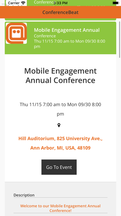 R@H ConferenceBeat Event App is Free Productivity app, developed by Results at Hand Software LLC. Latest version of R@H ConferenceBeat Event App is 1.5.0, was released on 2016-05-05 (updated on 2021-10-04). Overall rating of R@H ConferenceBeat Event App is 2.8. This app had been rated by 5 users.