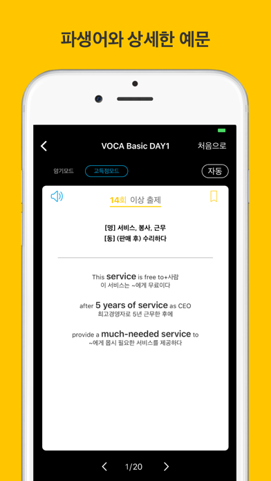 | ● 암기모드/ 고득점 모드 전환 가능 - 암기모드로 단어, 뜻만 간략하게 암기하거나 고득점모드로 자세한 설명까지 제공합니다. 7. |