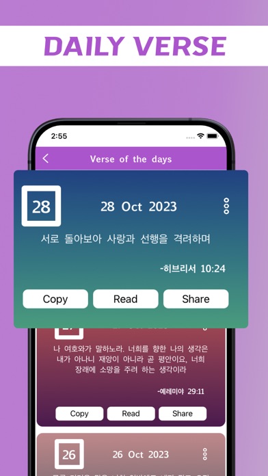 | ● One can listen and resume where they left off reading or say the Korean Bible app that reads to you. + + Korean Bible Reading Plans is defined as a daily audio bible app where one can hear the verses read in sequential order for listening. |
