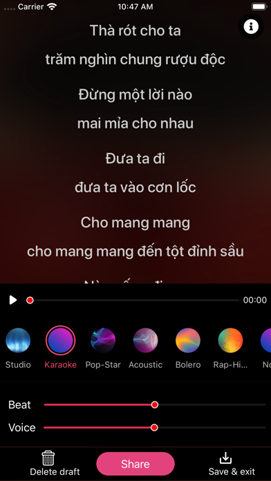 | ● All is updated quickly - Video Karaoke, Lyrics, YouTube, singer searching tool - Experience Karaoke singing with sound effects and professional video effects - Save and playback video and audio products - The function of singing instruction, measuring vocal range and suggest suitable tone for singers - See the top songs that have been recorded with this app. |