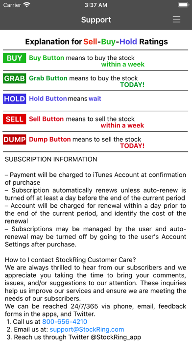 | ● ALWAYS DO YOUR OWN DUE DILIGENCE USING MULTIPLE SOURCES OF INFORMATION AND/OR SEEK THE ADVICE OF A LICENSED PROFESSIONAL BEFORE TRADING OR INVESTING StockRing, Inc., its officers, directors, and investors do not make any guarantee or other promises as to any results that may be obtained from using this app. |
