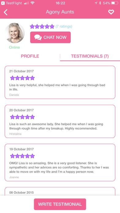 Instant Agony Aunts is Free Lifestyle app, developed by Purple Dot Digital Limited. Latest version of Instant Agony Aunts is 2.2, was released on 2012-03-21 (updated on 2017-12-19). Overall rating of Instant Agony Aunts is 4. This app had been rated by 1 users.
