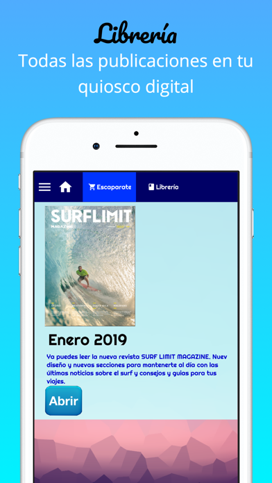 Surf Limit Magazine is Free Lifestyle app, developed by Ediciones Distribuciones y Aplicaciones Periodicas. Latest version of Surf Limit Magazine is 1.0, was released on 2019-02-14 (updated on 2019-02-14). Overall rating of Surf Limit Magazine is 0. This app had been rated by 0 users.
