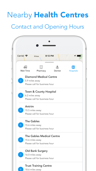 | ● This app is an innovative way of helping the public choose which health provider best suits their needs, whether thats an A&E, a local minor injuries unit pharmacy or dentist. -------------------------------- ► A&E and MIU Real Time Waiting Information The app provide real-time information on live waiting times and how busy the departments are at any time during the day. |