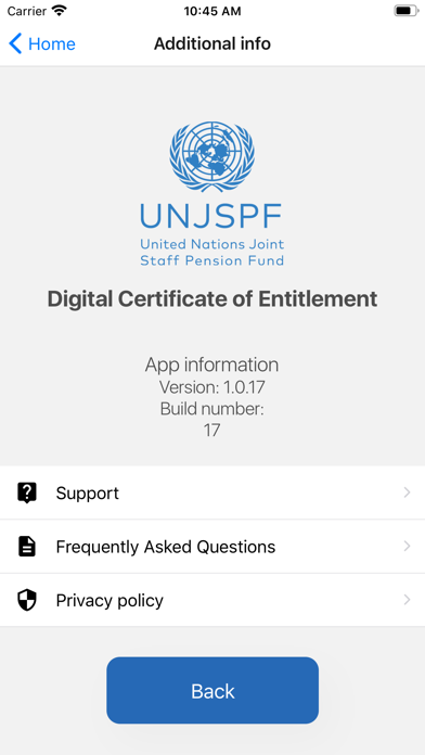The current paper-based process for the UNJSPF Certificate of Entitlement to prove a retiree’s/beneficiary’s eligibility for continued pension caters to over 70 thousand retirees and beneficiaries located in more than 190 countries. As it uses postal services, the process is very slow and cumbersome. The App uses facial biometric technology, liveness check and geo-location to submit a Digital Certificate of Entitlement to a secure blockchain. Use of location makes it possible for retirees and beneficiaries paid under the two-track to also use the app. All user data is stored securely either in the App or in data centres protected by UN Privileges and Immunity. No cloud-based services are used for processing of user information. The paper-based CE will continue to be an option for the retires/beneficiaries who cannot/ do not want to use the app.
