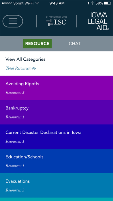 | ● In the event of a major disaster, chat Iowa Legal Aid staff, locate emergency shelters, and receive push notifications with vital information. |