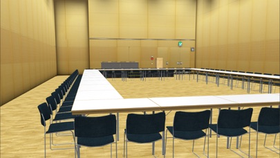 | ● Touch or click them to choose a room size (card mode). Click on the footsteps in the menu on the right to immerse into the virtual Congress Center of Messe Wien (virtual mode) – use the plus in the menu to choose a layout for your room. Use the navigation to move (left side) or look (right side) around. |