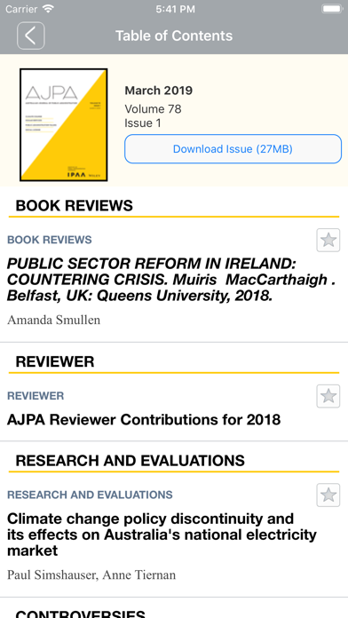 | ● - Stay current with the latest articles through Early View - Receive alerts when new issues are available (opt in) - Download articles and issues for offline perusal - Save your favorite articles for quick and easy access, including offline - Browse issues before you decide to download them - Dynamic References show references in context - Full screen figure and table viewer - Links to compatible supporting information for articles (not available offline) - Share article abstract and link via email - Share figures or tables via email - Access your personal or institutional subscription on your iPad (institutional subscribers require “roaming access” setup on Wiley Online Library) - No subscription? Abstracts are freely available and some full content, plus a free sample issue, is included. Aimed at a diverse readership, the Australian Journal of Public Administration is committed to the study and practice of public administration, public management and policy making. |