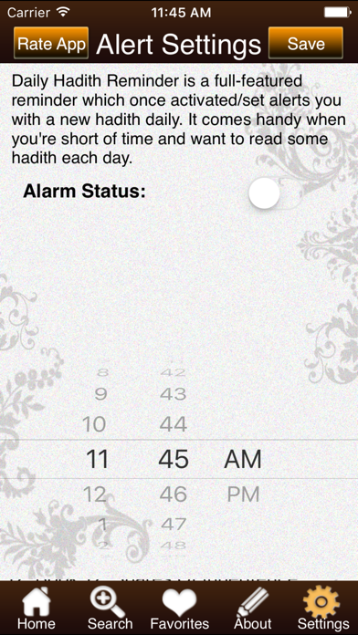 | ● •Ability to swipe back and forth to read next, or previous Hadith. |