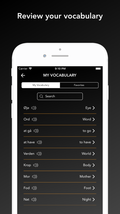 | ● Best flash card app to learn Danish most common vocabulary and words! Build a daily habit of learning 5 words a day to see long term progress. - Flip the flashcards to find out the meaning of the Danish words. |
