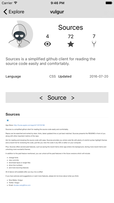 Sources - Simple code viewer for Github is Free Utilities app, developed by Shudao Wang. Latest version of Sources - Simple code viewer for Github is 1.2.2, was released on 2016-06-28 (updated on 2017-02-15). Overall rating of Sources - Simple code viewer for Github is 0. This app had been rated by 0 users.