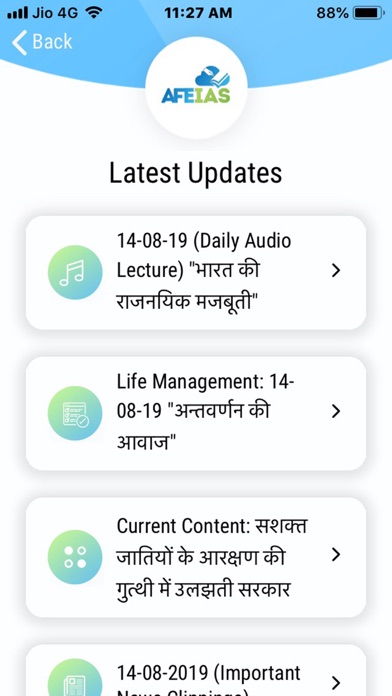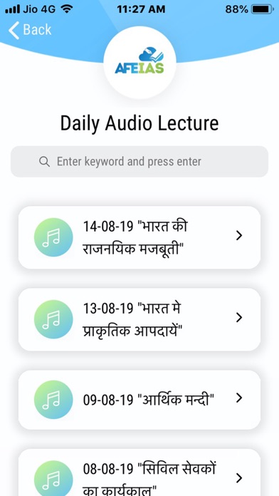 | ● The sections- Daily audio lecture, Life management audio, Important newspaper clippings, current content, Mock Tests and videos are some of our most visited and popular categories. |