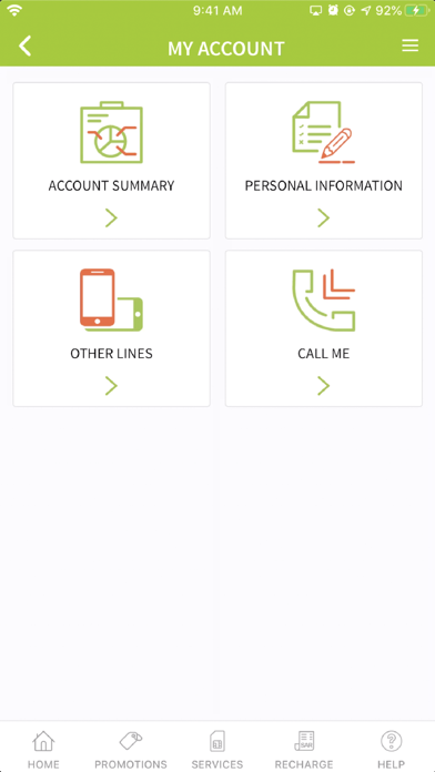 | ● من خلال الشاشة الأساسية يمكنك التعرف على مميزات باقتك الحالية ومتابعة استخدامك وإدارة جميع الخدمات الأخرى بما فيها: إجراء عمليات الشحن أو سداد الفواتير بعدة طرق (بطاقة ائتمانية، أو بطاقات شحن، أو عبر سداد) لك أو لأي عميل زين. |