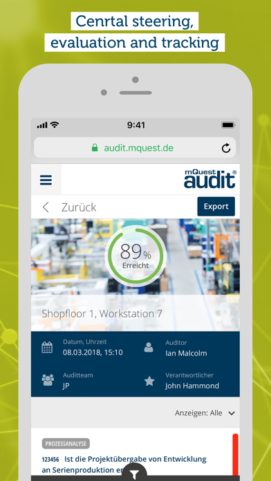 | ● Freely definable checklists and forms guarantee smooth processes in a wide variety of audit types: • Product audits • Process audits • Supplier audits • VDA 6.3 • 5S • LPA • HSEQ (Health, Safety, Environment, Quality) The mQuest digitization platform is a clever combination of a web-based portal and an offline-capable app. |