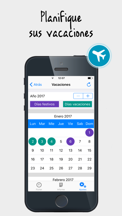 | ● Además podrá ver el calendario laboral con los días de vacaciones, días festivos o si ha estado de baja. |