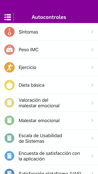 | ● Contiene información, fotografías, prospectos y recomendaciones sobre el tratamiento farmacológico, así como precauciones a tomar e información sobre posibles interacciones. • AUTOCONTROL: Este módulo permite al paciente llevar un control periódico de las principales variables de seguimiento, como alimentación, dieta, peso, ejercicio, etc. |