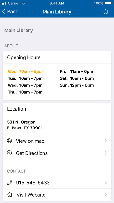 El Paso Public Libraries is Free Lifestyle app, developed by City of El Paso. Latest version of El Paso Public Libraries is 2021.1, was released on 2020-01-13 (updated on 2021-10-07). Overall rating of El Paso Public Libraries is 5. This app had been rated by 2 users.