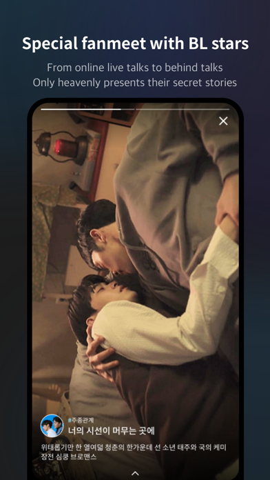Heavenly : BL content platform is Free Entertainment app, developed by Ad-OS Inc. Latest version of Heavenly : BL content platform is 1.14.2, was released on 2021-08-18 (updated on 2021-12-25). Overall rating of Heavenly : BL content platform is 5. This app had been rated by 4 users.