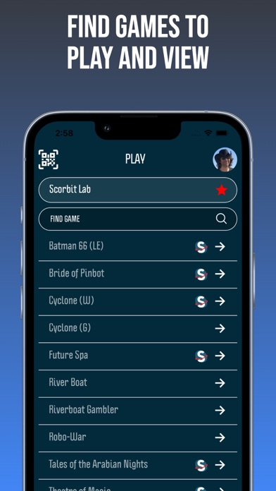 | ● Streamers and collectors can use Scorbit to add real-time scores or leaderboards to their streams and game rooms for big displays! Operators can use Scorbit to monitor their machines remotely, reducing downtime, and earning more revenue. Scorbit is connected pinball! • Find Games Scorbit’s platform allows owners of pinball machines to create venues and machines so other players can find and play them. |