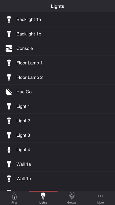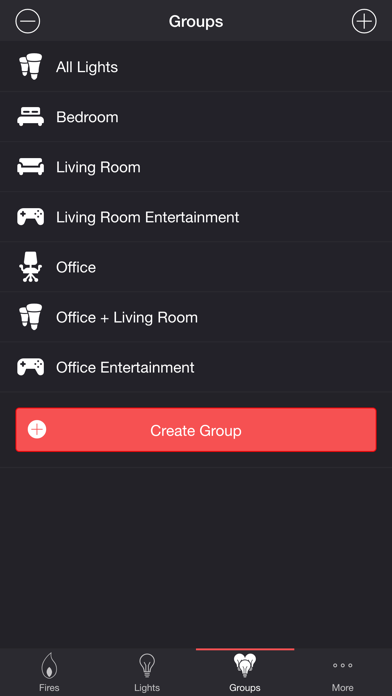 | ● Choose a group that you set up using your Philips Hue app, or create a new group in the Firestorm for Hue app. |