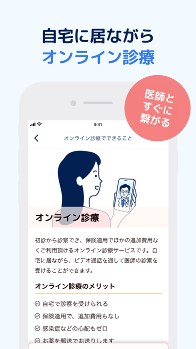 ■「キッズドクター」の特徴 子供の健康に関する不安を、看護師に無料で相談できる「チャット医療相談」や 夜間・休日の急な体調不良の際に「オンライン診療・往診」をご利用いただけます。 【 チャット医療相談 】 子供の健康に関する悩み事を無料で看護師に相談でき、最短3分でアドバイスがもらえます。 ◆ チャット医療相談の主な利用目的 ◆ 子供の健康に関するお悩みごとがあれば何なりとご相談ください。 例えば... 子供が38度熱を出しているけど、病院へ行く必要があるの? 子供の全身に湿疹が出ているけど、お風呂に入ってもいいの? お腹を痛がっているけどの診療科に行けばいいの? ◆ チャット医療相談のご利用料金 ◆ 無料 ◆ 対応する看護師の情報 ◆ チャット医療相談は、正看護師免許を保有する看護師が対応します。 【 オンライン診療 】 LINEビデオ通話を利用したオンライン診療行い、症状に合わせてお薬を処方し、薬局でお受け取りしていただきます。 ◆ オンライン診療で対応可能な症状 ◆ 内科・小児科 : 発熱,咳,鼻汁,嘔吐,頭痛,喘息発作,下痢など 外科 : 怪我,捻挫,打撲,切り傷,擦り傷,やけど,鼻血など 皮膚科 : 蕁麻疹,かぶれ,かゆみ,水ぶくれ,湿疹,発疹など ◆ オンライン診療のご利用料金 ◆ 診察費用のみ ※お子様の診察費用は健康保険と子ども医療費助成が適応されます。 ※費用がかかる場合は、お振込をお願いしております。 ※対応エリア外の方のご利用は、一度診療費用ご負担頂き、後日お住まいの自治体に返金手続きをしてください。 ◆ オンライン診療の利用可能エリア ◆ 東京都:全域(島しょ部を除く) 埼玉県:全域 千葉県:全域 神奈川県:全域 ※2022年4月における対象エリアです。 【 往診 】 医師が自宅に訪問して診察を行い、その場で薬をお渡しします。 ◆ 往診で対応可能な症状 ◆ 内科・小児科 : 発熱,咳,鼻汁,嘔吐,頭痛,喘息発作,下痢など 外科 : 怪我,捻挫,打撲,切り傷,擦り傷,やけど,鼻血など 皮膚科 : 蕁麻疹,かぶれ,かゆみ,水ぶくれ,湿疹,発疹など 検査 : インフルエンザ検査,ノロウイルス検査,溶連菌検査,PCR検査など ◆ 往診のご利用料金 ◆ 診察費用と地域によっては交通費がかかります。 ※お子様の診察費用は健康保険と子ども医療費助成が適応されます。 ※子ども医療費助成は対応する医療機関の所在地と別の都道府県にお住まいがある場合、一時的に医療費をご負担頂き、後日お住まいの自治体への返金申請をして頂くようお願いしております。 ◆ 往診の利用可能エリア ◆ 東京都:23区全域、調布市、三鷹市、武蔵野市、狛江市、小金井市、国分寺市、国立市、府中市、稲城市、西東京市、東久留米市、小平市、清瀬市、東村山市、東大和市 埼玉県:さいたま市全域、和光市、戸田市、蕨市、川口市、草加市、八潮市、朝露市、新座市、志木市、三郷市 千葉県:市川市、松戸市 神奈川県:横浜市(青葉区、都筑区、港北区、鶴見区、緑区、神奈川区、瀬谷区、旭区、保土ケ谷区、西区、南区、中区)、川崎市全域 愛知県:名古屋市全域、刈谷市、東海市、豊明市、知立市、安城市、岡崎市、豊田市 大阪府:大阪市全域、豊中市、吹田市、摂津市、守口市、門真市、寝屋川市、大東市 兵庫県:尼崎市、伊丹市 福岡県:福岡市(東区、博多区、中央区、南区、城南区)、小郡市、春日市、大野城市、太宰府市、那珂川市、糟屋郡(志免町、須惠町、新宮町、粕屋町) 北海道:札幌市(中央区、東区、西区、北区、白石区、厚別区、豊平区、手稲区、清田区) ※2022年4月における対象エリアです。 ■ 対応する医師の情報 ■ オンライン診療と往診は、大学病院などに勤務する現役の医師が対応します。(医師免許・医師臨床研修修了登録証を有する医師。初期研修医は所属しません)。 【 病気に関するニュースが届く】 感染症の流行情報や病気や症状など、子育てにおいて知っておきたい医師監修記事が無料で読めます。 ■ アプリに不具合・問題がある場合 ■ アプリ内の設定からお問い合わせください。 ※アプリが起動できない場合は、以下のメールアドレスまでご連絡ください。 [email protected]