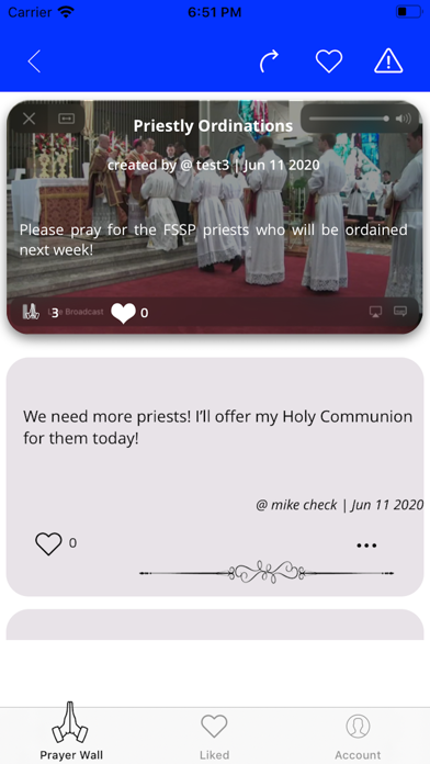 | ● The app is kinda simple at the moment, with a prayer wall where parishioners can request prayers and respond to requests by posting spiritual bouquets. |