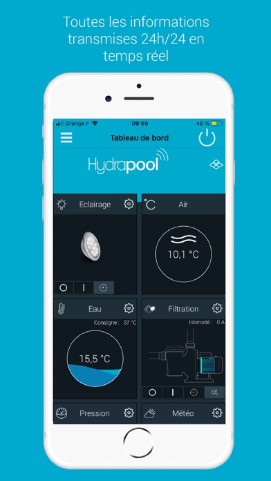 | ● Avec des alertes paramétrables et une interface configurable en fonction du besoin, l’application est entièrement personnalisable. Pour les professionnels Tout le parc de piscines accessible rapidement et facilement en un clin d’oeil. |