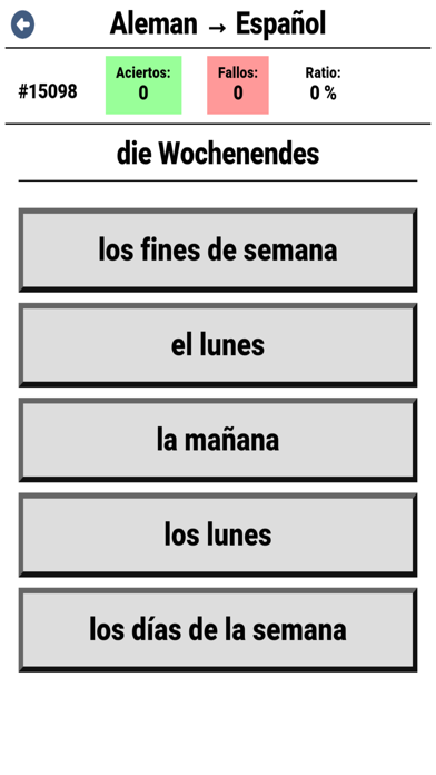 La aplicación te permite practicar mediante diferentes tipos de ejercicios con el vocabulario básico de Alemán según el Marco Común Europeo. Actualmente dispone solo del nivel 1A2, con mas de 1200 palabras de ese nivel. En un futuro se irán añadiendo los diferentes niveles: 2A2, 1B1, 2B1, 1B2, 2B2, C1 y C2. Está especialmente indicado para aquellas personas que estudian en la EOI. Podrás practicar la escritura de las palabras en alemán, la formación de los plurales, el aprendizaje de los géneros, la traducción... Especialmente indicada para iniciarse en el aprendizaje del alemán de una forma sencilla y divertida.