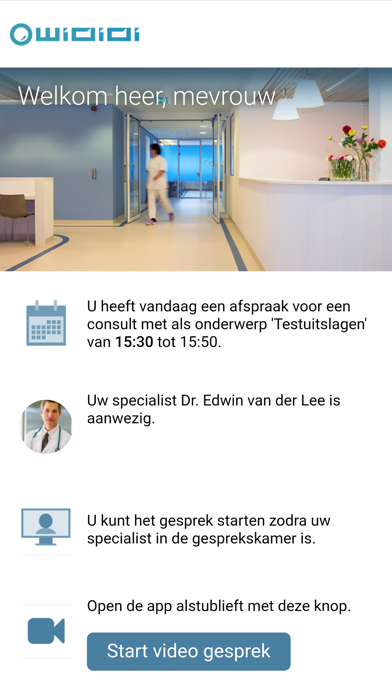 | ● Zodra de arts ook het virtuele gesprek ‘opent’ zien de arts en patiënt elkaar. Tijdsbesparing voor arts en patiënt op consults Veilige informatie-uitwisseling Virtuele spreekkamer is kosteloos voor de patiënt. |
