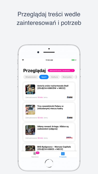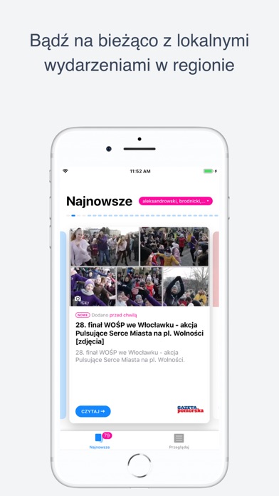 | ● Wszystko, co dzieje się w miejscowościach, które Cię interesują • Lokalny biznes, przedsiębiorcy i rynek pracy • Lokalny sport - wiadomości sportowe, relacje na żywo, najnowsze wyniki • Wypadki i sytuacja na drogach, rajdy, sporty motorowe • Kultura i rozrywka lokalna - informacje o wydarzeniach w Twojej okolicy, koncerty, teatr, imprezy Korzystając z aplikacji zyskujesz: • Wygoda! Wybierz miejscowości, które chcesz obserwować, aby szybko dostać aktualności i informacje lokalne • Rzetelność - wiadomości tworzy zespół dziennikarzy i redaktorów Gazeta Pomorska. |
