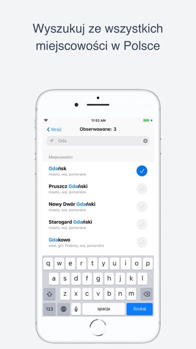 ● Informacje lokalne, które Cię interesują - tylko z miejscowości, które chcesz obserwować.
