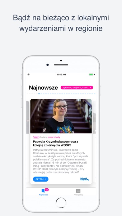 ● Wszystko, co dzieje się w miejscowościach, które Cię interesują • Lokalny biznes, przedsiębiorcy i rynek pracy • Lokalny sport - wiadomości sportowe, relacje na żywo, najnowsze wyniki • Wypadki i sytuacja na drogach, rajdy, sporty motorowe • Kultura i rozrywka lokalna - informacje o wydarzeniach w Twojej okolicy, koncerty, teatr, imprezy Korzystając z aplikacji zyskujesz: • Wygoda! Wybierz miejscowości, które chcesz obserwować, aby szybko dostać aktualności i informacje lokalne • Rzetelność - wiadomości tworzy zespół dziennikarzy i redaktorów Dziennik Bałtycki.