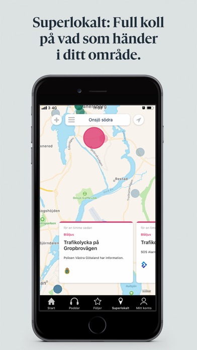 | ● Du kan dessutom ställa in så att du får en pushnotis när något har hänt inom dina bevakade områden. LOKALT FOKUS Ta del av lokala nyheter via tjänsten Superlokalt. |