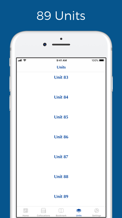 | ● This will help you to have better understanding of how a collocation is used in context. ● Units - 89 units - Play audio of entries in the same unit - Flip a flashcard to see its example sentence - Audio feature to help you remember a collocation ● Collocations of The day - Learn 5 collocations daily with Collocations of The day feature ● Random feature - Learn 5 random collocations with Random feature ● Other features: - Bookmark your collocations - Translation into your language ● If you want to suggest a new feature or report a bug, please send feedback to us. |