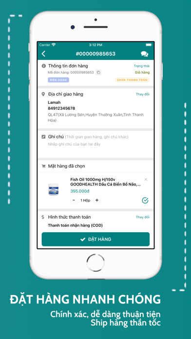 | ● Đặt hàng TPCN trực tuyến + - Người dùng có thể đặt hàng trực tuyến và lựa chọn hình thức thanh toán và giao hàng phù hợp. + - Ứng dụng sẽ gửi thông báo cho người dùng về tình trạng đơn hàng. + 3. |