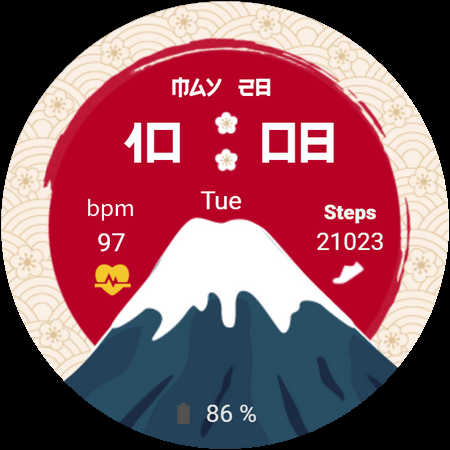 Fujiyama Wear OS Watch Face لجهاز الكمبيوتر - الخلاصة: