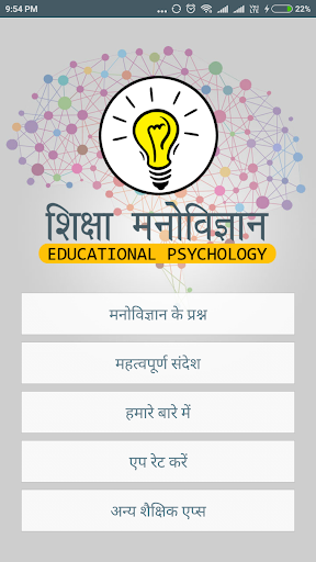 Educational Psychology على رأس قائمة التعليم فئة التطبيقات على Google Playstore. لقد حصلت بالفعل على نقاط تقييم جيدة ومراجعات. حاليا, Educational Psychology للنوافذ قد تجاوز 50,000 تطبيق المنشآت and 0 نجمة متوسط نقاط التقييم الإجمالية للمستخدم.
