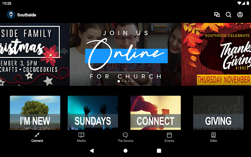 الآن يمكنك فقط النقر نقرًا مزدوجًا فوق ملف تطبيق في bluestacks وابدأ في استخدام Southside Christian Church تطبيق على الكمبيوتر المحمول الخاص بك. يمكنك استعمال ال تطبيق بنفس الطريقة التي تستخدمها بها على الهواتف الذكية التي تعمل بنظام Android أو iOS.
