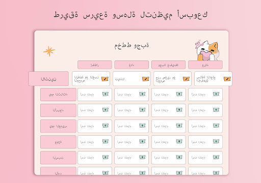 | اسم | قالب مخطط الوجبات الأسبوعي |