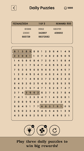 Number Search - Hardest Game е в горната част на списъка с Словесни приложения за категории в Google Playstore. Има наистина добри оценки и отзиви. Понастоящем, Number Search - Hardest Game за Windows преодоля 5,000 Игра инсталации and 0 звезда среден потребителски обобщен рейтинг точки.