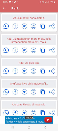 Swahili Proverbs - Methali е в горната част на списъка с Книги и справочници приложения за категории в Google Playstore. Има наистина добри оценки и отзиви. Понастоящем, Swahili Proverbs - Methali за Windows преодоля 10,000 приложение инсталации and 0 звезда среден потребителски обобщен рейтинг точки.